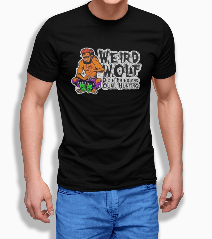 Weird Wolf Dixie Fried Quail Hunting Cartoon Character T-Shirt