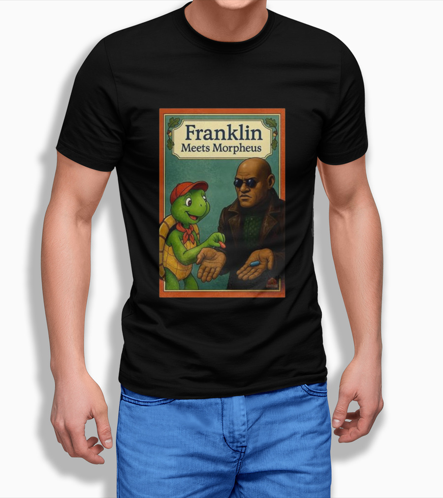 Franklin Meets Morpheus Turtle Red Blue Pill Choice Encounter T-Shirt