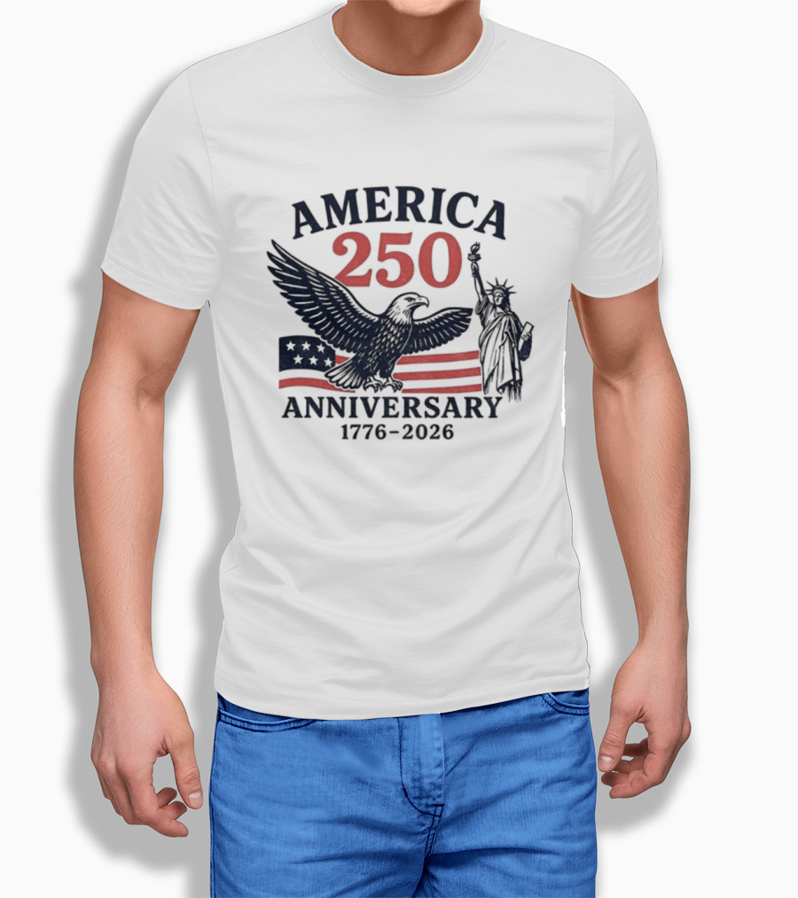 This T-Shirt features America 250 Anniversary 1776-2026 US Flag Statue of Liberty Eagle print and is constructed from 100% ring-spun cotton fabric with a weight of 4.19 oz/yd² (142 g/m²). The fabric is pre-shrunk during manufacturing, a process intended to minimize dimensional changes after washing according to standard care instructions. Designed with a regular fit for everyday use, it incorporates double-needle stitching at key seams. Please refer to the size chart for detailed measurements.
