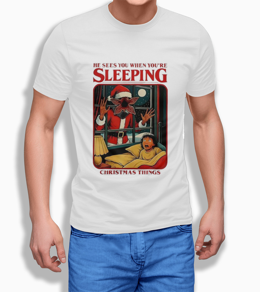 Demogorgon Stranger Things He Sees You When You’re Sleeping Christmas Things Santa T-Shirt