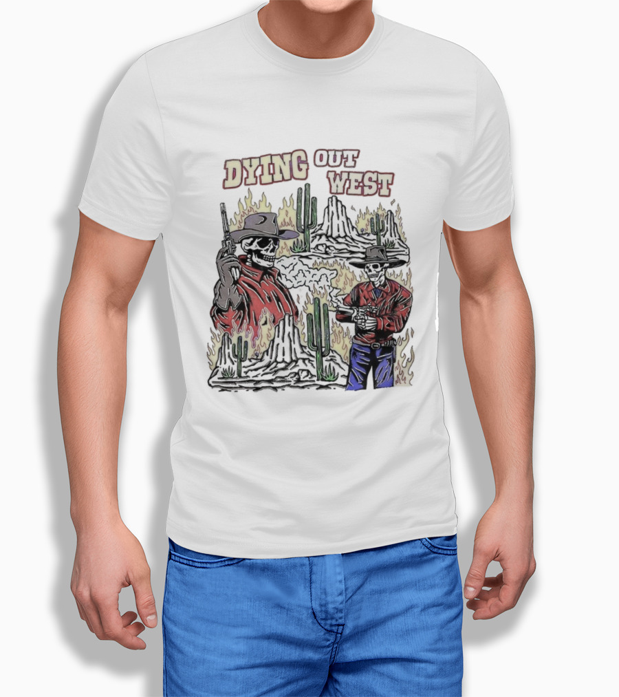 Dying Out West Cowboy Skeleton Cactus Flames Scenic T-Shirt
