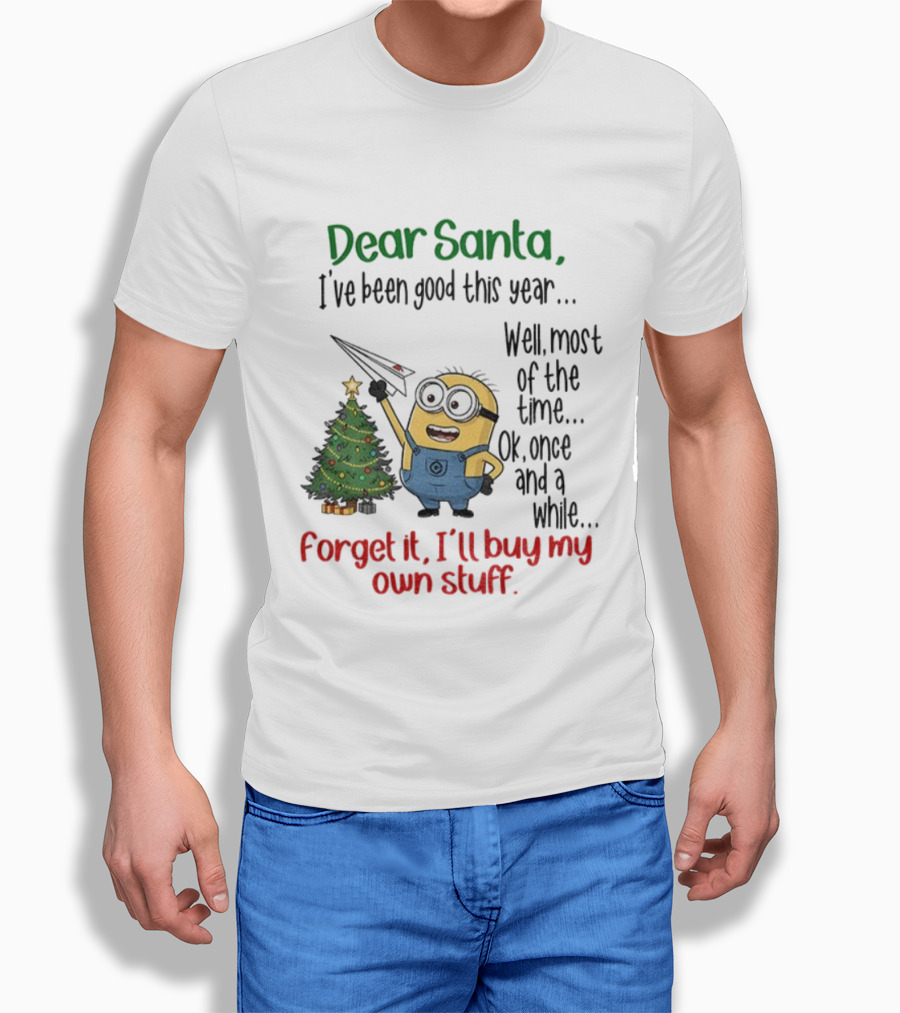 This T-Shirt features Dear Santa Minion Christmas Tree I've Been Good Forget It I'll Buy My Own Stuff print and is constructed from 100% ring-spun cotton fabric with a weight of 4.19 oz/yd² (142 g/m²). The fabric is pre-shrunk during manufacturing, a process intended to minimize dimensional changes after washing according to standard care instructions. Designed with a regular fit for everyday use, it incorporates double-needle stitching at key seams. Please refer to the size chart for detailed measurements.