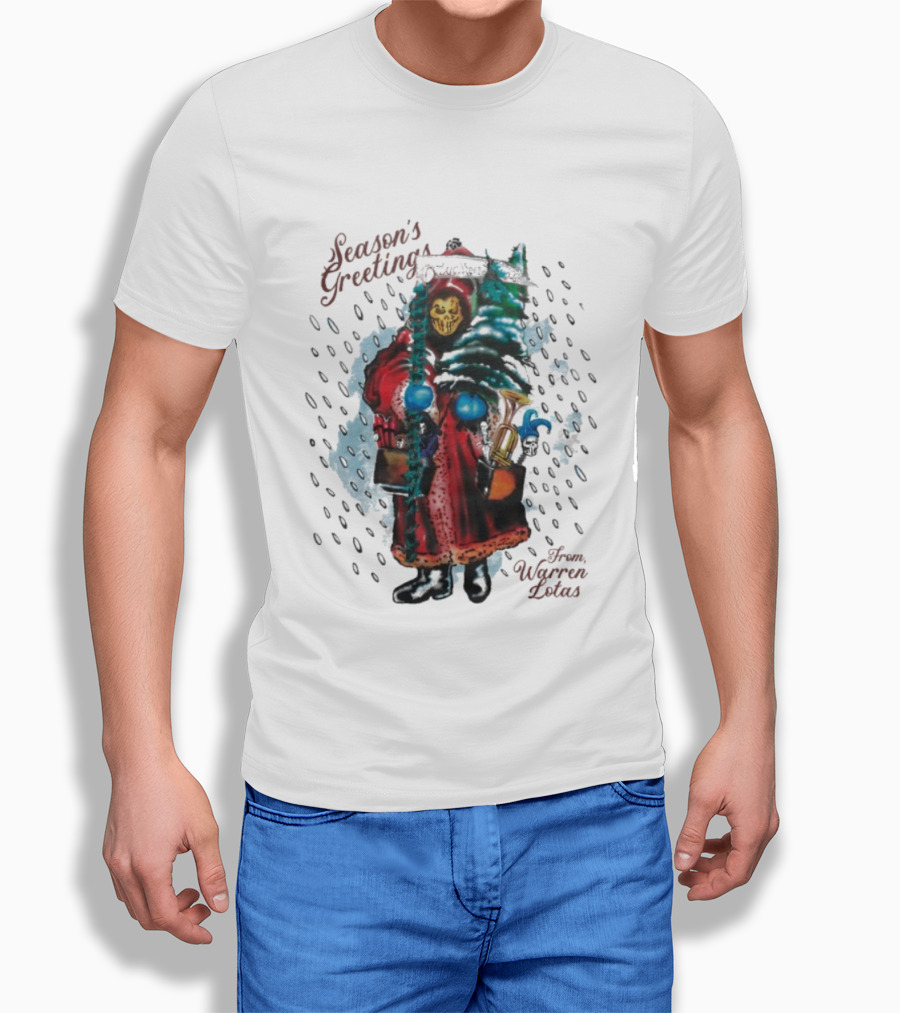 Season's Greetings From Warren Lotas Christmas Skeleton In Santa Robe T-Shirt