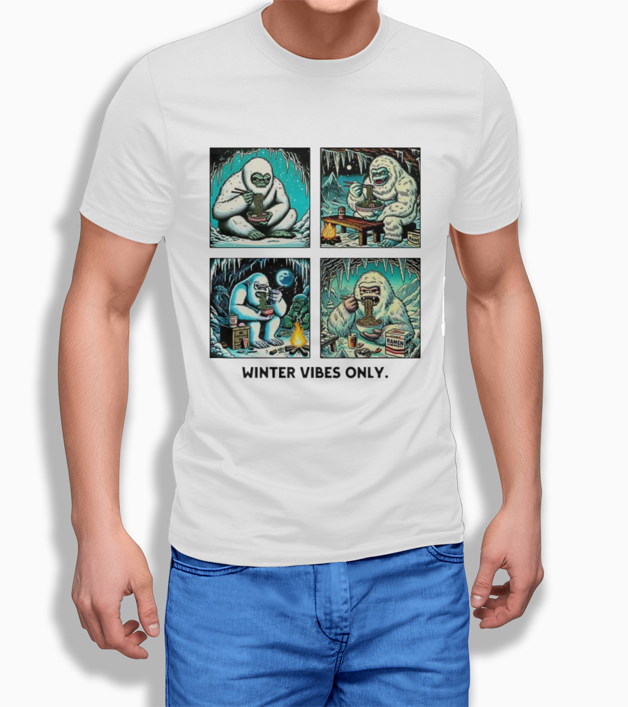 Winter Vibes Yeti Enjoying Ramen Under Icy Cave T-Shirt