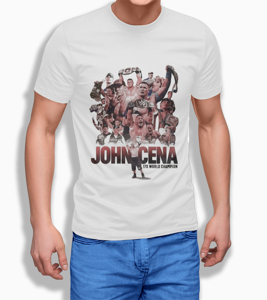 This T-Shirt features John Cena The World Champion WrestleMania 17th Championship print and is constructed from 100% ring-spun cotton fabric with a weight of 4.19 oz/yd² (142 g/m²). The fabric is pre-shrunk during manufacturing, a process intended to minimize dimensional changes after washing according to standard care instructions. Designed with a regular fit for everyday use, it incorporates double-needle stitching at key seams. Please refer to the size chart for detailed measurements.