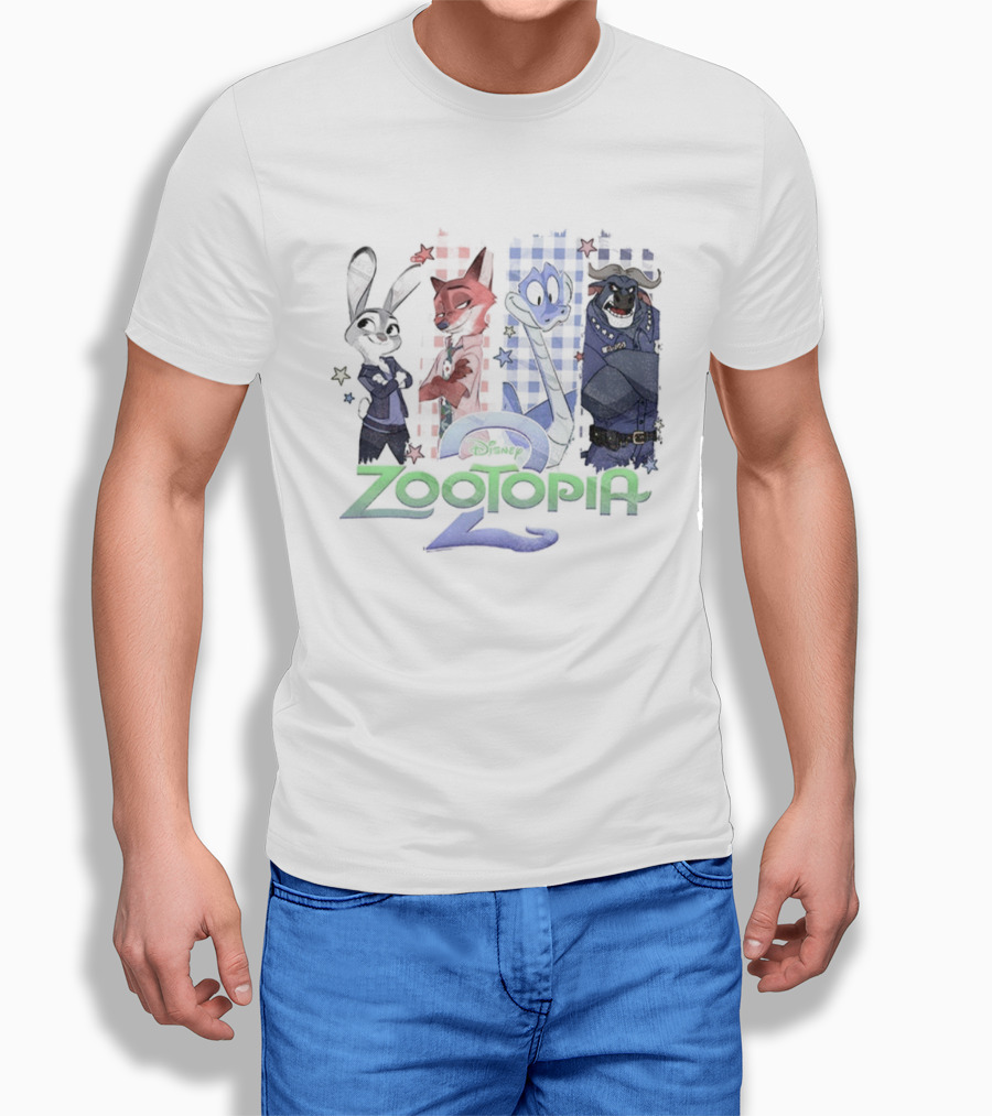 This T-Shirt features Disney Zootopia 2 Movie Bunny Fox Characters print and is constructed from 100% ring-spun cotton fabric with a weight of 4.19 oz/yd² (142 g/m²). The fabric is pre-shrunk during manufacturing, a process intended to minimize dimensional changes after washing according to standard care instructions. Designed with a regular fit for everyday use, it incorporates double-needle stitching at key seams. Please refer to the size chart for detailed measurements.