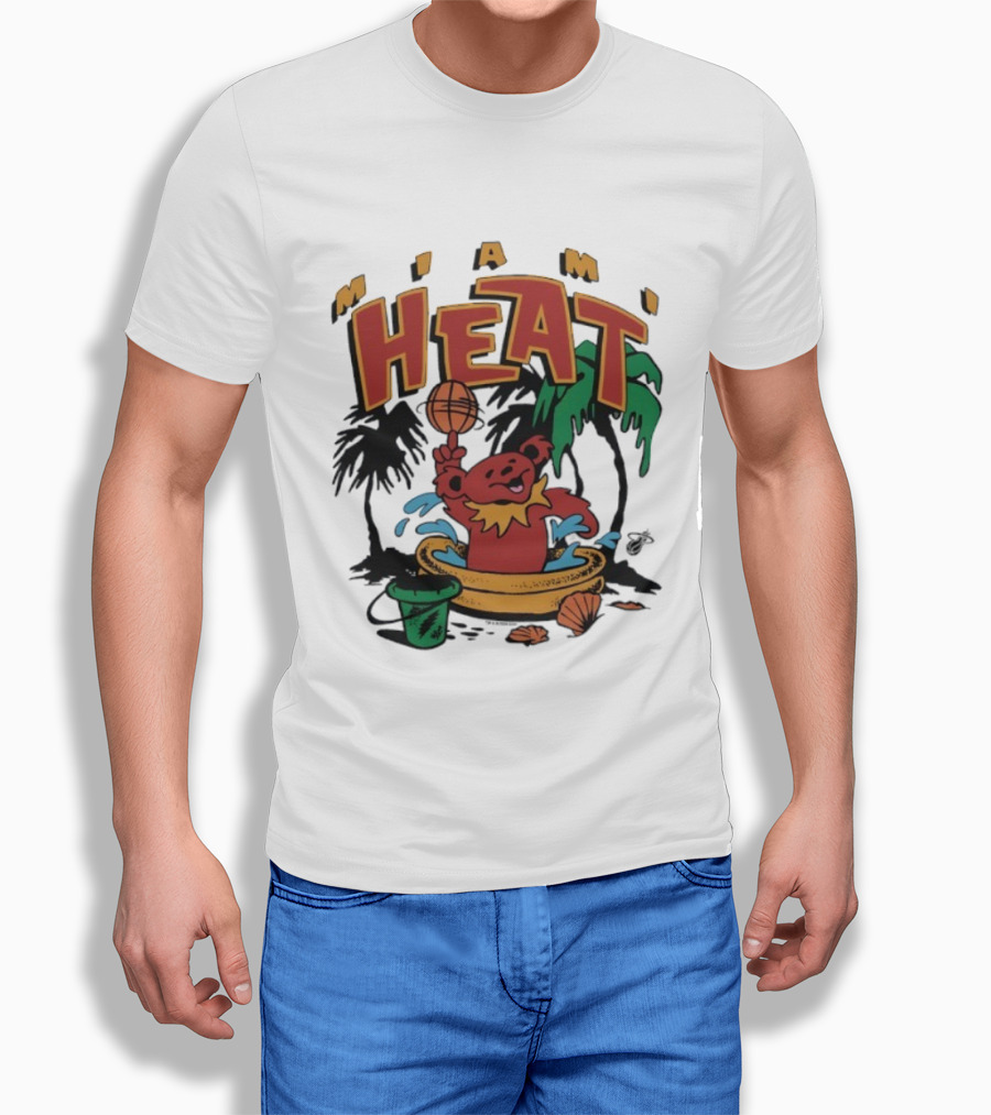 Grateful Dead Bear Miami Heat Basketball Palm Trees Beach Theme T-Shirt