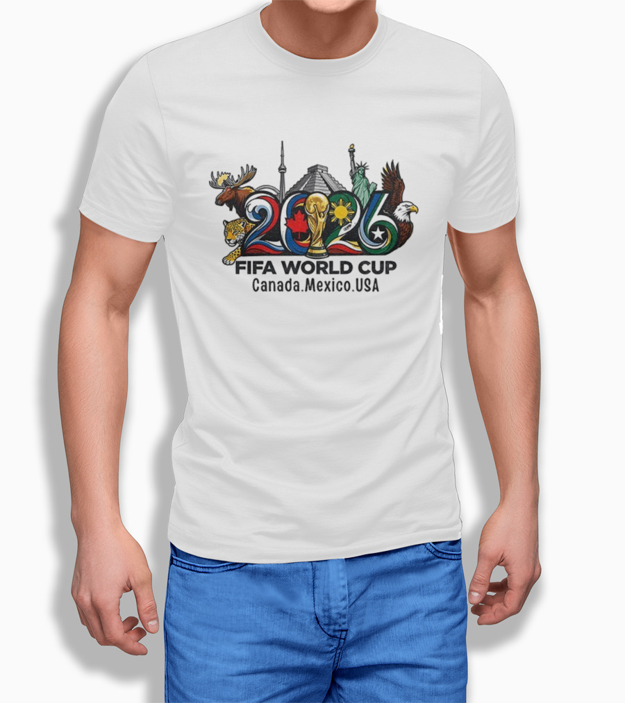 This T-Shirt features FIFA World Cup 2026 Canada Mexico USA Wildlife Landmarks Icons print and is constructed from 100% ring-spun cotton fabric with a weight of 4.19 oz/yd² (142 g/m²). The fabric is pre-shrunk during manufacturing, a process intended to minimize dimensional changes after washing according to standard care instructions. Designed with a regular fit for everyday use, it incorporates double-needle stitching at key seams. Please refer to the size chart for detailed measurements.
