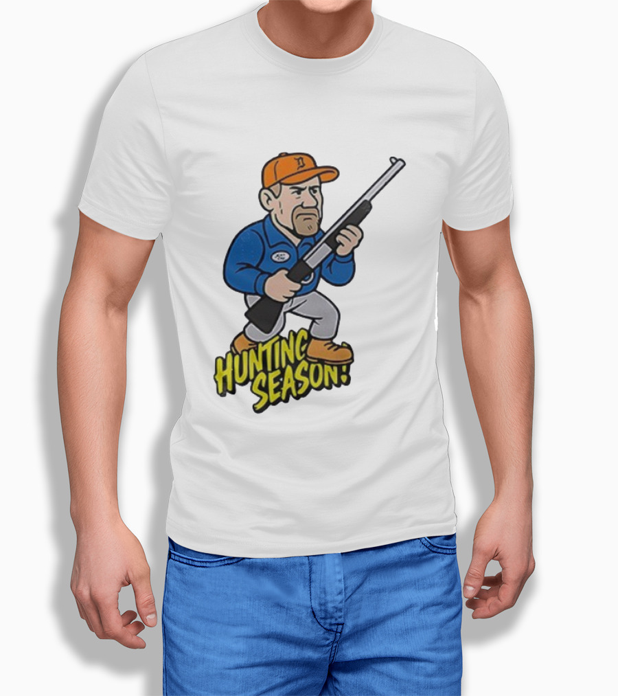 This T-Shirt features Detroit Lions Hunting Season Cartoon Character with Rifle print and is constructed from 100% ring-spun cotton fabric with a weight of 4.19 oz/yd² (142 g/m²). The fabric is pre-shrunk during manufacturing, a process intended to minimize dimensional changes after washing according to standard care instructions. Designed with a regular fit for everyday use, it incorporates double-needle stitching at key seams. Please refer to the size chart for detailed measurements.