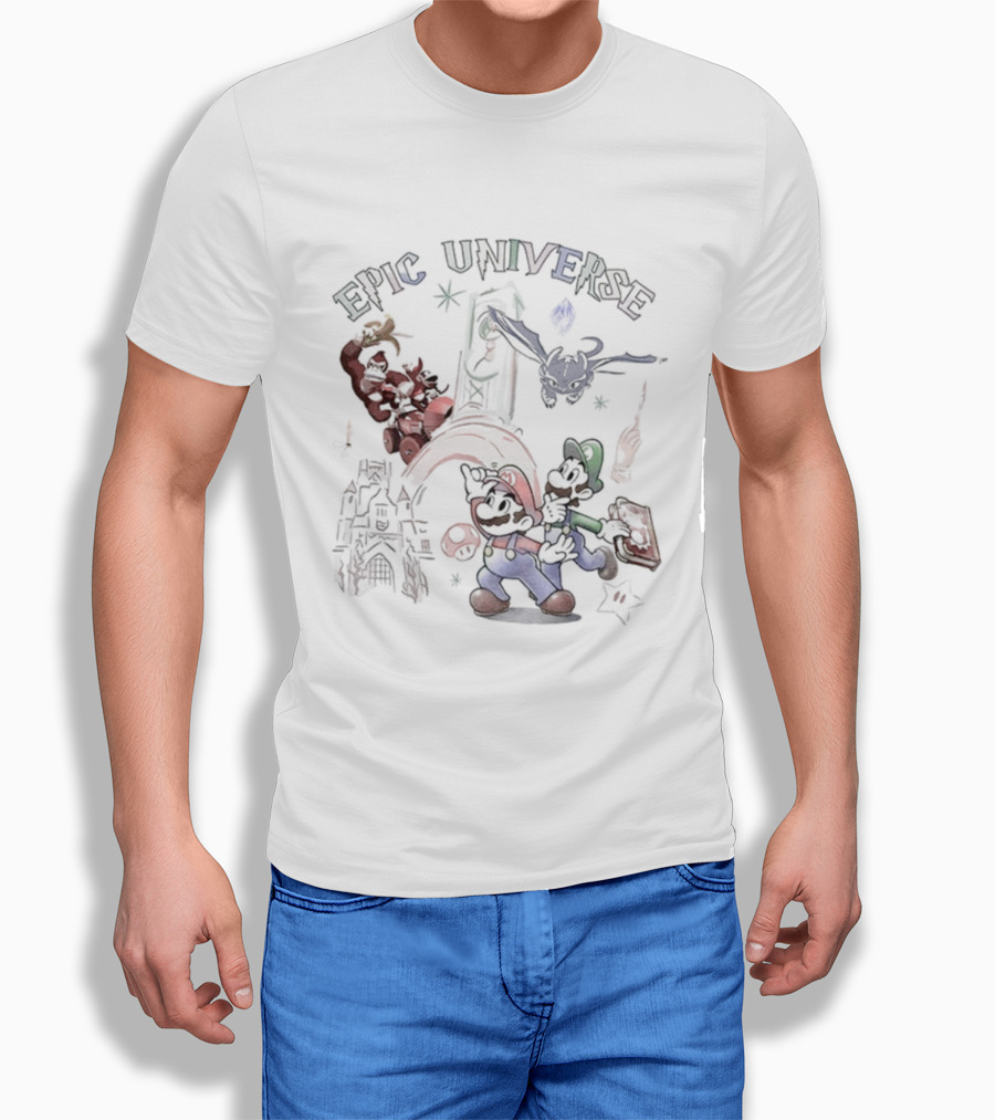 This T-Shirt features Epic Universe Mario Luigi Donkey Kong How to Train Your Dragon Collaboration print and is constructed from 100% ring-spun cotton fabric with a weight of 4.19 oz/yd² (142 g/m²). The fabric is pre-shrunk during manufacturing, a process intended to minimize dimensional changes after washing according to standard care instructions. Designed with a regular fit for everyday use, it incorporates double-needle stitching at key seams. Please refer to the size chart for detailed measurements.