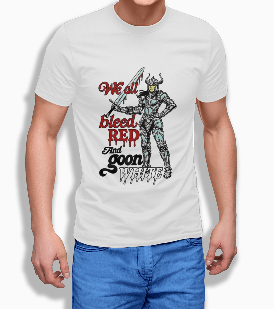 We All Bleed Red And Goon White Warrior In Armor With Sword T-Shirt