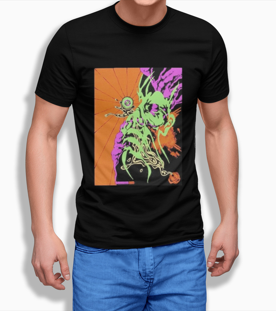 This T-Shirt features Viagra Boys Imploding Consciousness Psychedelic Creature Vortex print and is constructed from 100% ring-spun cotton fabric with a weight of 4.19 oz/yd² (142 g/m²). The fabric is pre-shrunk during manufacturing, a process intended to minimize dimensional changes after washing according to standard care instructions. Designed with a regular fit for everyday use, it incorporates double-needle stitching at key seams. Please refer to the size chart for detailed measurements.