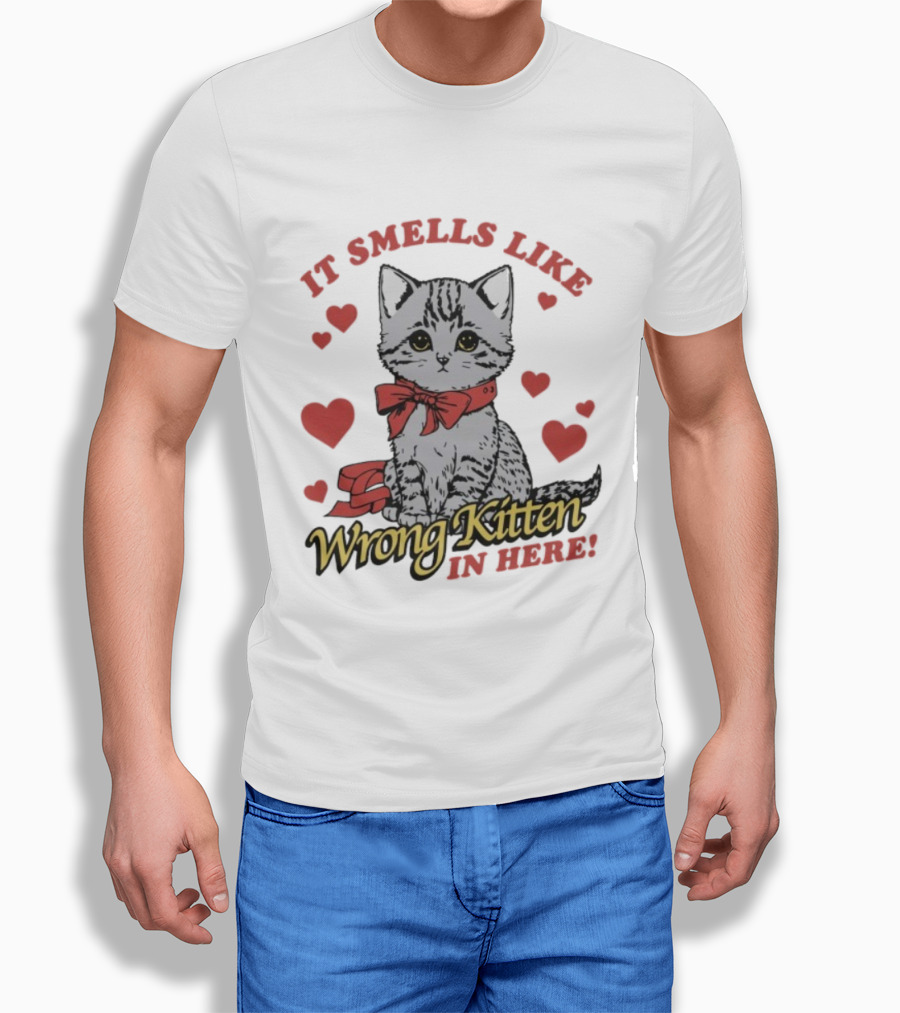 Smells Like Wrong Kitten Cute Cat Bow Hearts T-Shirt