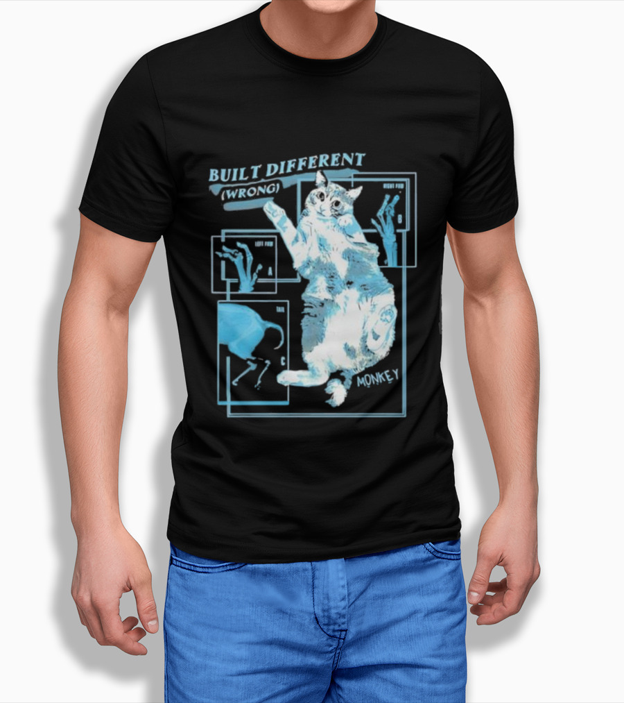 Built Different Wrong Monkey Cat Blueprint Diagram T-Shirt