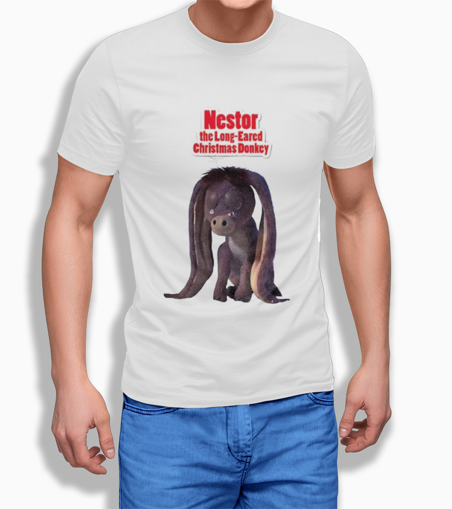 This T-Shirt features Nestor The Long Eared Christmas Donkey Character Illustration print and is constructed from 100% ring-spun cotton fabric with a weight of 4.19 oz/yd² (142 g/m²). The fabric is pre-shrunk during manufacturing, a process intended to minimize dimensional changes after washing according to standard care instructions. Designed with a regular fit for everyday use, it incorporates double-needle stitching at key seams. Please refer to the size chart for detailed measurements.