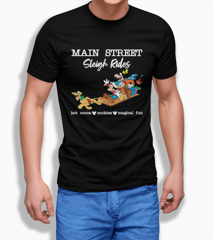 Main Street Sleigh Rides Mickey And Friends Hot Cocoa Cookies Magical Fun T-Shirt