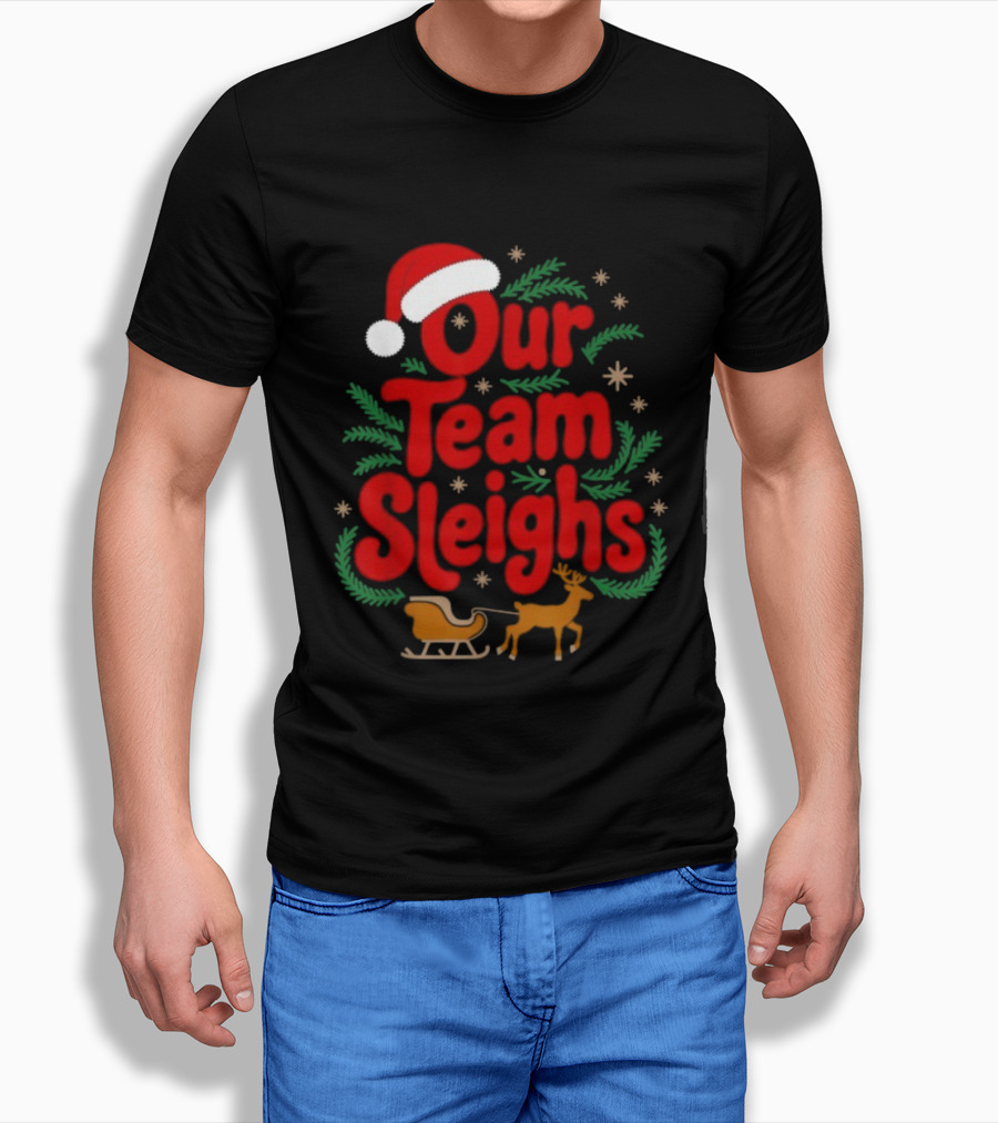 Our Team Sleighs Reindeers Santa Christmas Holiday Spirit T-Shirt