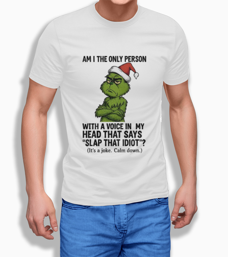 Grinch Santa Hat Am I The Only Person With A Voice In My Head That Says Slap That Idiot Christmas T-Shirt
