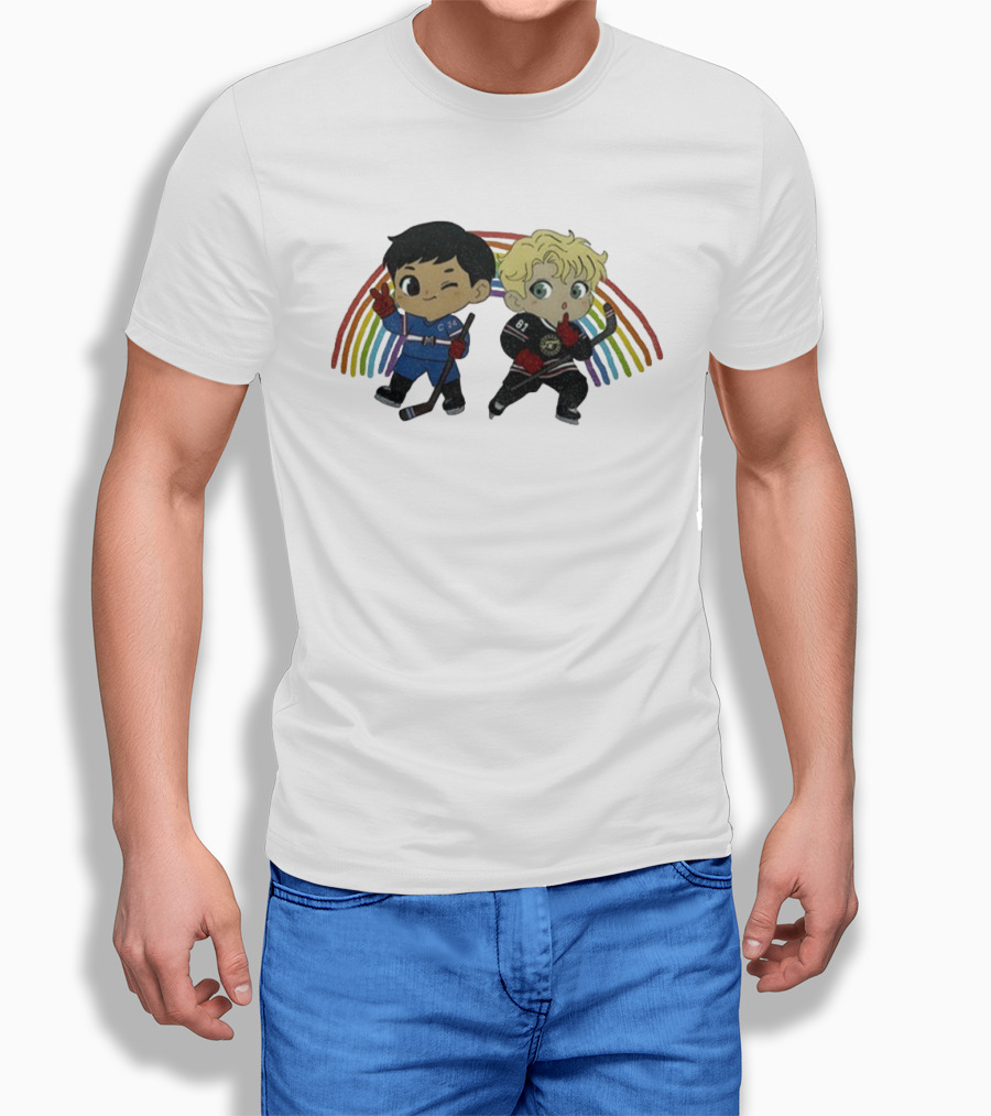 Hollanov Pride Heated Rivalry Chibi Hockey Players Rainbow T-Shirt
