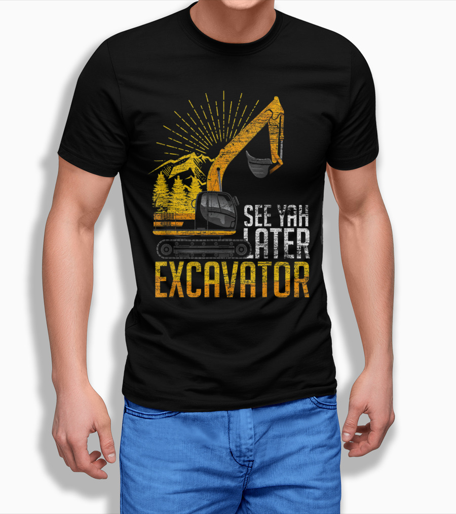 See Yah Later Excavator Mountains And Trees Scene T-Shirt