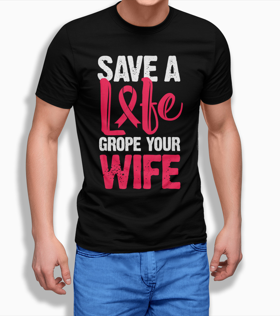 Save A Life Grope Your Wife Breast Cancer Awareness Funny Husband T-Shirt
